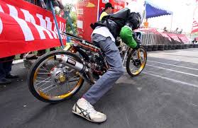 "Konsentrasi mata pada lampu start dan refleks tangan buat tarik gas, sangat dibutuhkan. Khusus saat buka gas, cukup setengah dulu. Kalau start langsung gas pol, ban depan akan terangkat. Akibatnya, waktu bisa berkurang," Eko Chodok, dragster tim TDR.